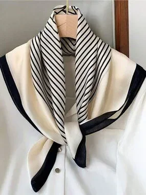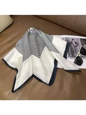 ✨Silky Black and White Art Scarf Geometric Square Design Luxury Accessory hijab✨