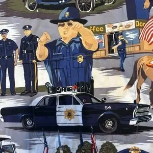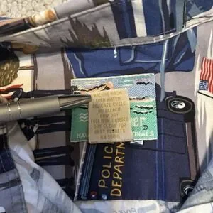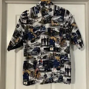 Reyn Spooner Men's Medium Police Law All Over Print Button Shirt Hawaiian Traditionals