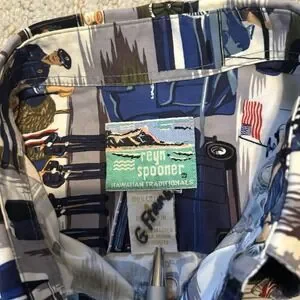 Reyn Spooner Mens Police Law AllOver Print Button Shirt M -Hawaiian Traditionals