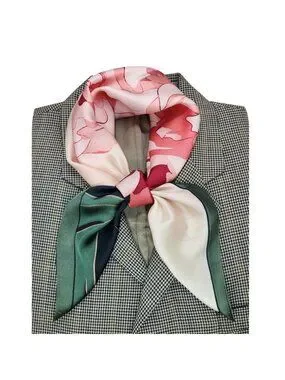 ✨Large Floral Soft Scarf Square Silky Head Neck Wrap Green Pink Flower Accessory