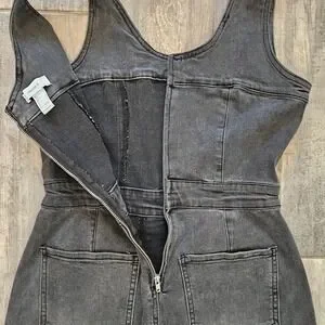 Forever 21 Denim Jumpsuit Women S Wide Leg Sleeveless Charcoal Wash Grunge Edgy