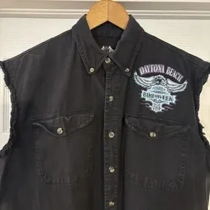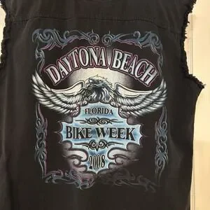 Mens 2008 Daytona Beach Bike Week Black Denim Vest Motorcycles Riding Size Lg