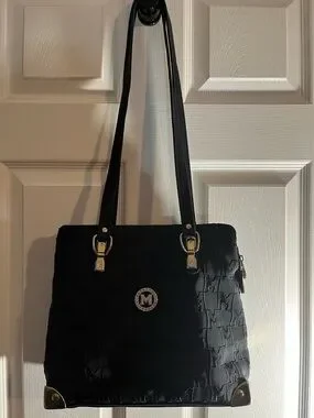 Black Monogram Tote Bag Gold Hardware Shoulder Bag