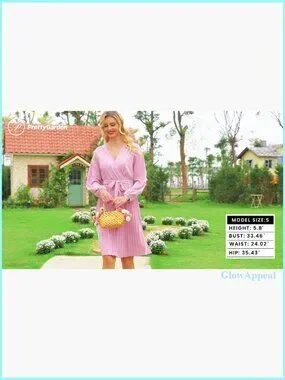 Style: Wrap dress with V neckline and puff sleeves