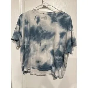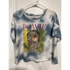 David Bowie Aladdin Sane Tie Dye Graphic Crop Top Tee XXL Blue White Rock Music