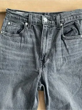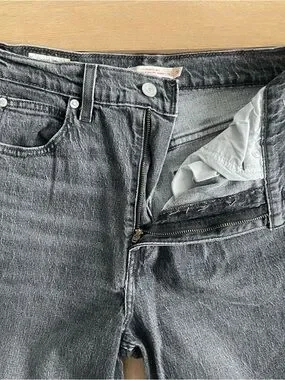 These are Levi's® Premium flared jeans with an ultra-high rise and a slim-fitting hip and thigh. They're made with organic cotton denim that has just a touch of stretch. This version comes in a dark blue wash with a clean hem.