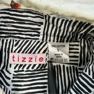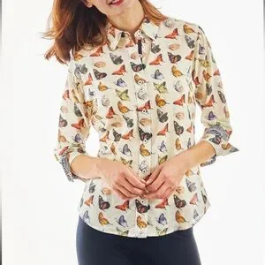 TIZZIE 100% COTTON 3/4 SLEEVE ROME SHIRT NEUTRAL BUTTERFLIES VOILE