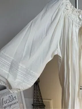 NWT A Loves A Cream Cotton Maxi Dress Boho Peasant Tiered Lace Trim 100% Cotton