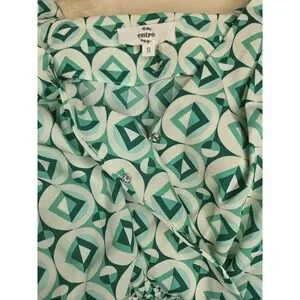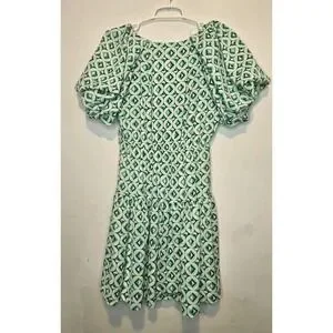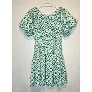 The Entro Green & White Puff Sleeve Mini Dress in size small is a stylish and versatile piece for various occasions. The dress features a geometric pattern in green color with puff sleeves and ruffle accents, adding a touch of elegance. Made from polyester, this fit & flare dress is perfect for summer, fall, and spring events and is suitable for weddings, parties, casual outings, formal events, workwear, and business functions. With its short sleeves and midi dress length, this dress is a chic choice for any fashion-forward woman.