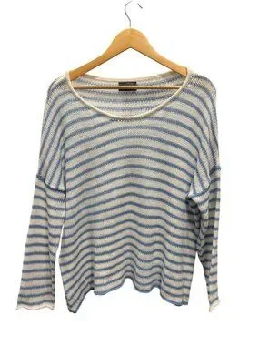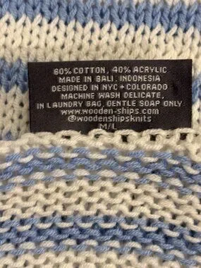 Wooden Ships Striped Sweater M/L Blue White Lightweight Coastal Knit