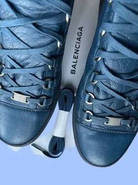 Authentic Balenciaga Arena high top sneakers in “Bleu Profond” (deep blue leather).