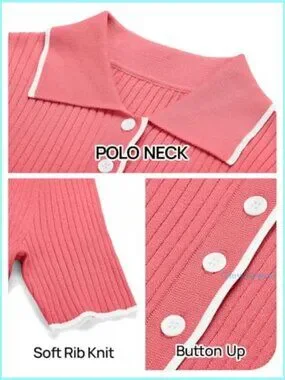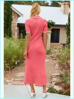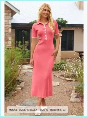 Ribbed Maxi Dress V-Neck Button Front Slim Fit Knit Sweater Dress