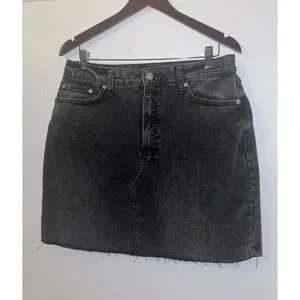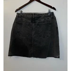 Stylish black denim mini skirt with a frayed hem. Perfect for casual outings.