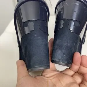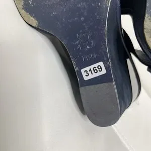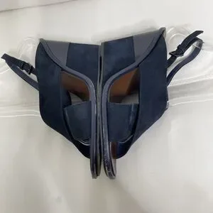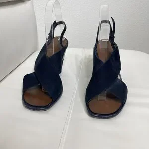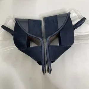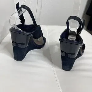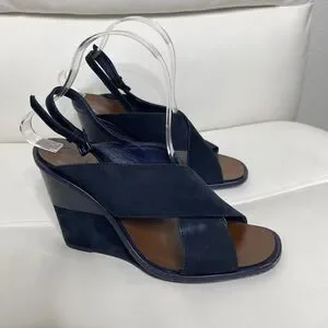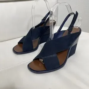 Tory Burch Gabrielle Navy Blue Suede Slingback Wedge Sandals Shoes Womens 7.5