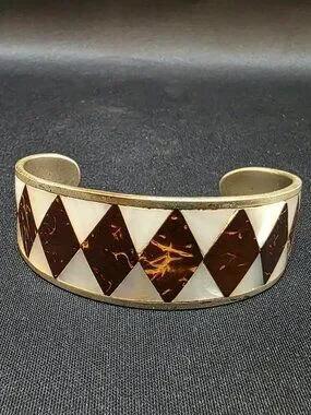 MEXICAN MODERNIST vintage Hecho En México MULTIPLE STONES INLAY CUFF BRACELET