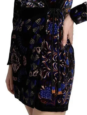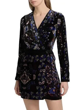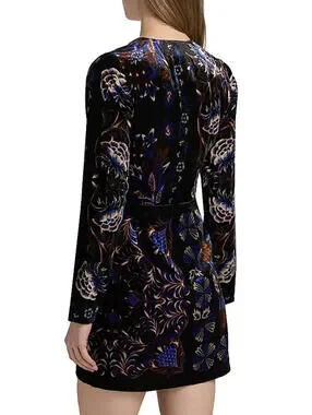 New, Farm Rio Arabesque Mix Scarves Floral Velvet Wrap Minidress Sz L #MD1629
