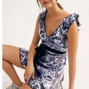 Free People Sequin Mini Dress in Purple and Black Size:6