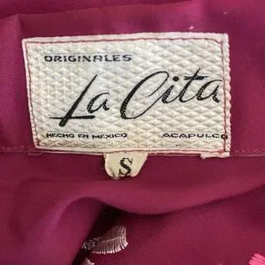 Vintage La Cita Tunic Blouse Shirt Women's Size Small Pink Embroidered Flowers