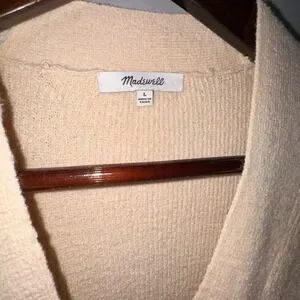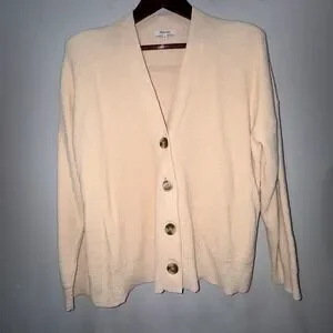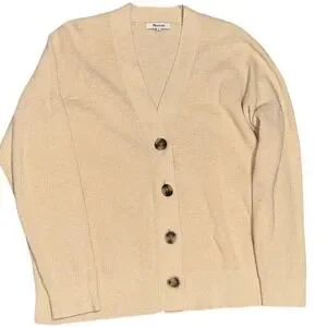 Madewell Birchmoor Cardigan Sweater Relaxed Fit Textured Ribbed Beige Large $98