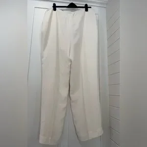 Cream lined trousers with side zipper closure.