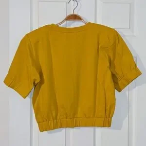 Terea by Andrea Pitter Yellow Short Sleeve Top Elastic Slightly Cropped Sz M NWT