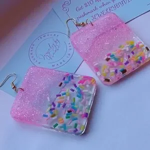 Keywords: casual barbiecore girlhoodcore y2k y2kstyle 2000'sstyle 90style 2000style 80's 80style handmade hypoallergenic earrings gift gifts Christmas holiday birthdays cupcakes sprinkles
