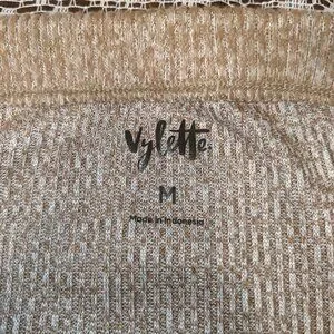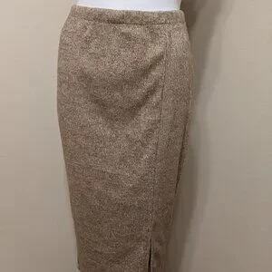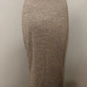 Honey brown ribbed skirt with front slit Fabric: 60% Polyester 36% Rayon 4% Spandex Waist: 27" Length: 30"
