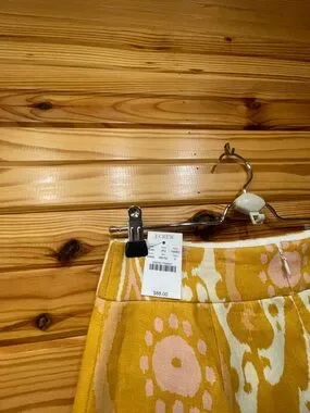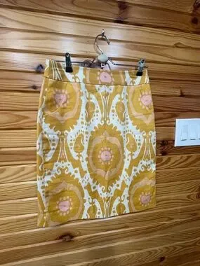 J. Crew Yellow and Cream Floral Ikat Pencil Skirt with Pink Accents