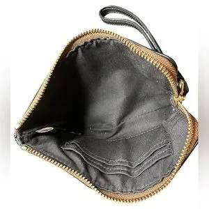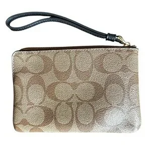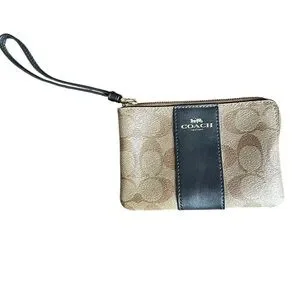 Coach Signature Monogram and Black Leather Wristlet