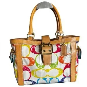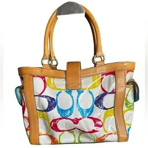 Coach Limited Edition PVC Multicolor Signature Scribble Boxy Tote - with Vachetta Leather!