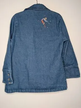 Vintage Kokopelli Embroidered Denim Jacket Made in USA Boho Southwest Small