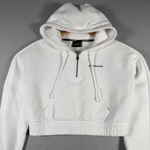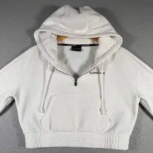 Alphalete White Cropped Quarter Zip Hoodie Sweatshirt Athletic Small Comfort Gym