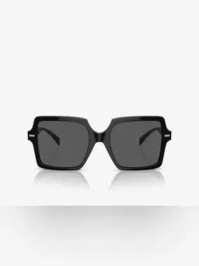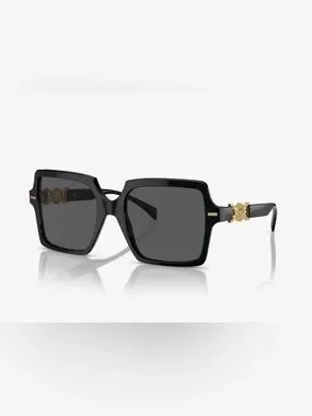 Experience the iconic style of Versace with sunglasses, a modern interpretation of the brand's legacy. The square black color and solid dark grey lenses exude timeless elegance while showcasing an audacious side in shiny finish. Elevate your look to new heights with these designer shades that seamlessly merge past and present for a truly iconic design.