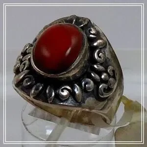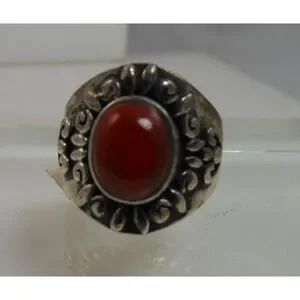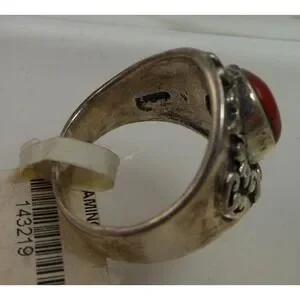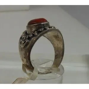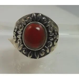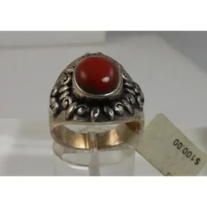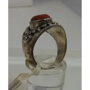 Add a touch of vintage charm to your jewelry collection with this beautiful Sterling Silver Carnelian Band Ring. The stunning carnelian stone measures 11mm x 8mm and is set in a 21mm x 21mm x 6mm sterling silver band. This unique ring is a size 7.5 and weighs 8.6 grams. Crafted in Thailand, this piece is New-Old-Stock, making it a one-of-a-kind find.