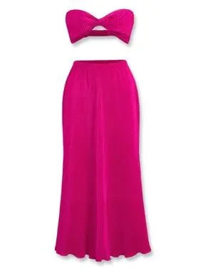 Fuchsia Pleated Maxi Skirt + Twist Bandeau Set | Size Small