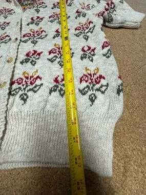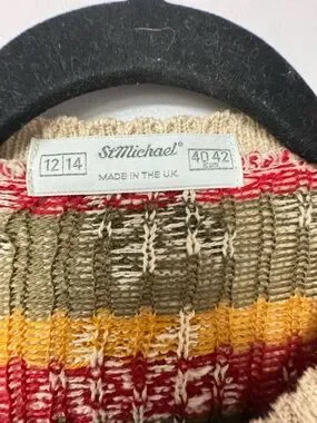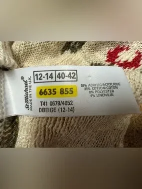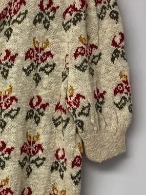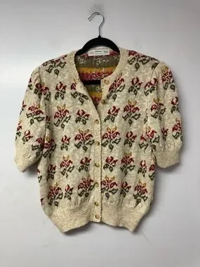 St Michael Vintage Floral Knit Cardigan Beige Cottagecore sweater UK 12/14 A4