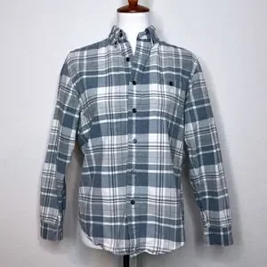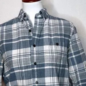 J. CREW Button Up Twill Shirt Suede Elbow Patches SM Plaid Blue Gray Equestrian