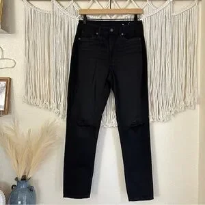 American Eagle Distressed High Rise Mom Jean Size 2R Regular Black