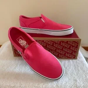 Bold Asher honeysuckle pink Vans slip-ons. Easy to wear. Stylish and comfortable.