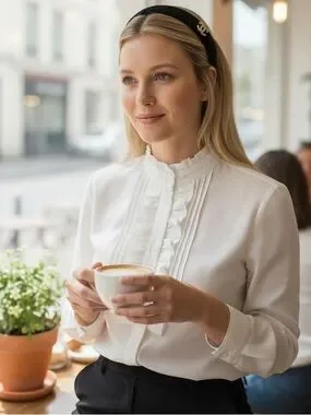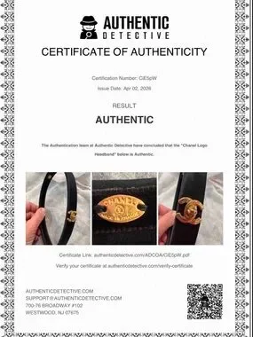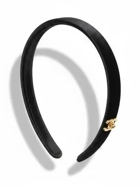 Elegant black headband featuring a gold CC logo accent. Sleek and refined accessory for polished looks.