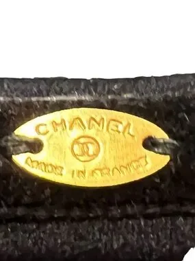 CHANEL Black Headband with Gold CC Turnlock Logo
