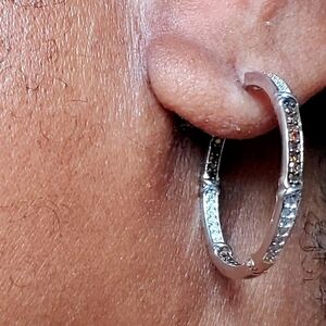 Genuine natural red and white diamond inside outside X and O earrings, 0.75 ctw, with 42 round-cut diamonds in each earring. Each seven-diamond section is adorned with an X, signifying hugs and kisses. These are not diamond chips; each round diamond is clearly visible. A gorgeous statement piece for a night out, finished in luxurious platinum over sterling silver, making them more durable and tarnish-resistant while giving them a brilliant shine.