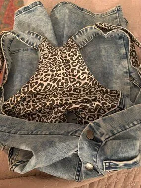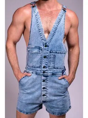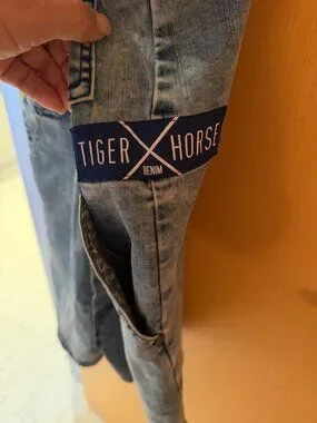 Tiger x Horse Mens Denim Overall Size Medium Blue West Snow Wash Pocket Casual
