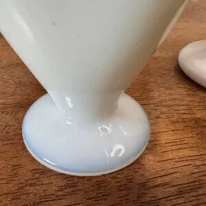 🎨 Color: White milk glass with clear crystal ruffled edges