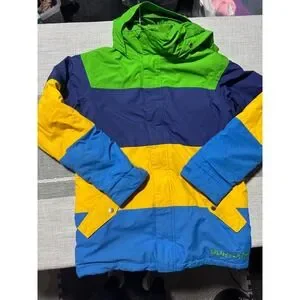 Kids Burton Snowboard Jacket Size L Colorblock Green Blue Yellow Navy Hooded ski