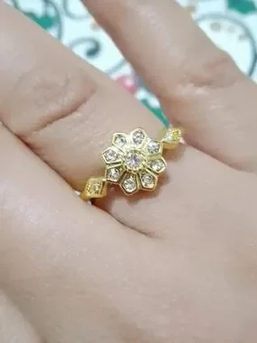 Size 6, 18k gold plated Delicate Floral Ring with stones Accents - Women Jewelry