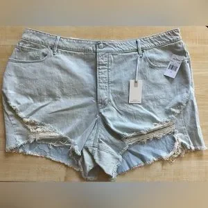 Good American Light Wash Distressed Bombshell Denim Short in Blue648 Size 20 NWT