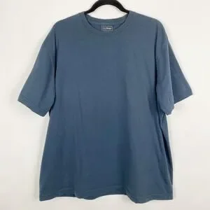 LL Bean Mens XL Carefree Unshrinkable Blue Cotton Crew Neck Short Sleeve T Shirt