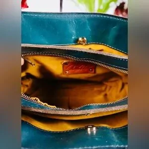 Patricia Nash Rosina Leather Satchel Deep Blue Nature w/ Blue Coral