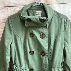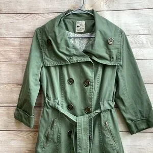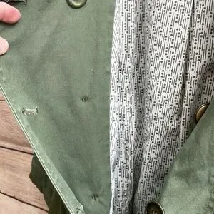EXCELLENT CONDITION ANTHROPOLOGIE TULLE DOUBLE BREASTED TRENCH COAT IN OLIVE GREEN